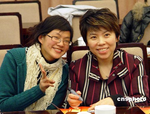 1月30日,奧運冠軍鄧亞萍、葉喬波出席一項以“攜手海峽·走近奧運”為主題的臺灣大學生冬令營閉營式。鄧亞萍在北京奧運賀年卡上為臺灣大學生簽名留念。兩位知名運動員當天與臺灣同學們討論奧運場館建設,力薦北京各類特色建筑。 中新社發 劉舒凌 攝