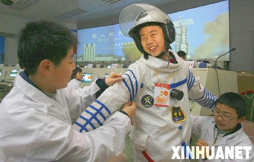 1月24日,東高地三中初一年級(jí)的學(xué)生付義南在試穿“宇航服”,和同學(xué)們一起免費(fèi)體驗(yàn)東高地青少年科技館的航天科普活動(dòng)。當(dāng)日,北京市豐臺(tái)區(qū)東高地街道正式啟動(dòng)“奧運(yùn)牽手”工程,專門制作發(fā)放3000余張“奧運(yùn)牽手卡”給轄區(qū)內(nèi)的學(xué)生,寒假期間,學(xué)生將和父母親一起持卡到社區(qū)登記,參加社區(qū)奧運(yùn)志愿服務(wù)活動(dòng),按照服務(wù)的時(shí)間長(zhǎng)短,社區(qū)進(jìn)行登記“積分”,以評(píng)選“奧運(yùn)貢獻(xiàn)獎(jiǎng)”。據(jù)了解,凡持“奧運(yùn)牽手卡”的學(xué)生,可以免費(fèi)參加?xùn)|高地青少年科技館的航天科普活動(dòng)、享受優(yōu)惠價(jià)參觀中華航天博物館,到“社區(qū)綠色科普活動(dòng)站”免費(fèi)借閱圖書和光盤。
