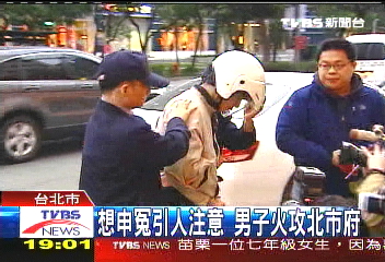 對臺當局不滿,一男子持汽油彈火攻臺北市政府(圖片來源:TVBS)