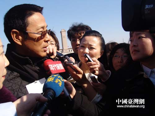 全國政協十一屆一次會議開幕,臺灣媒體圍堵追訪政協委員陳道明