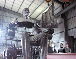 執(zhí)行銅像焊接的林昭慶描述,由于手上沒有原鑄造銅像圖片,加上送來的銅片碎落四處,就像玩拼圖般尋尋覓覓,前后花兩個月才摸出輪廓,印象最深,是看到當(dāng)初拆解撕裂的手法“異常凄慘”,認為何其無辜。