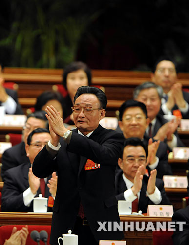 再次當選全國人大常委會委員長的吳邦國、新當選國家副主席的習近平等,也向代表們鞠躬致意。