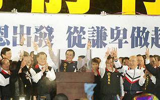 馬英九當選后上臺致詞,接受民眾熱情的歡呼。(東森新聞圖)