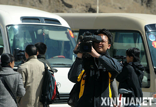 當日,由國務院新聞辦組織的境內外記者采訪團從北京經成都飛抵西藏自治區首府拉薩采訪“3·14”打砸搶燒事件經過。這個采訪團由境內外19家媒體的記者組成。其中,國外媒體包括美聯社、美國《華爾街日報》、《今日美國》、英國《金融時報》、俄羅斯俄通-塔斯社、日本共同社、新加坡《聯合早報》、韓國KBS電視臺和卡塔爾半島電視臺;香港媒體來自《文匯報》、《明報》、《南華早報》、鳳凰衛視和香港無線電視;臺灣媒體有中央社、《聯合報》和東森電視。采訪團成員包括中國境內的《中國日報》和《北京周報》兩名記者。 他們將在拉薩進行為期三天的采訪。 新華社記者 覺果 攝
