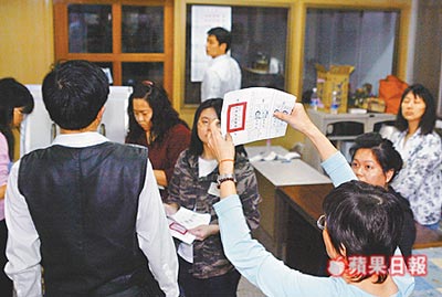 3月22日當天投開票所計票情形。(圖:蘋果日報)