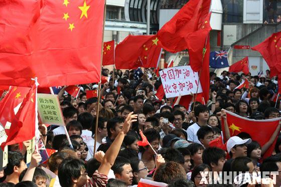 4月13日,數千華人華僑自發地在悉尼街頭舉行大型愛國和平游行,維護祖國團結統一,呼吁西方媒體停止不實報道,譴責暴力和謊言。他們從唐人街附近的娛樂中心出發,經過市政廳等主要街道,最后抵達市中心的海德公園。這次和平游行展現了澳大利亞華人華僑熱愛和平、支持奧運火炬傳遞和維護祖國統一的決心。 新華社記者江亞平攝