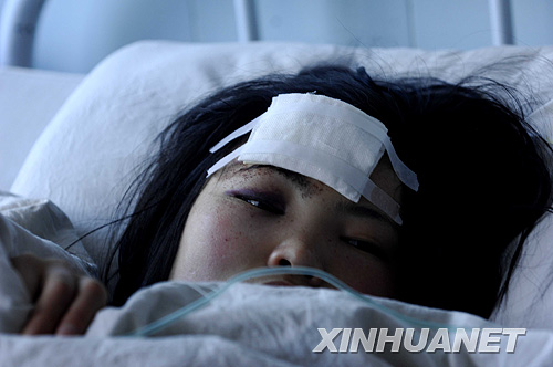 拉薩移動公司的營業員王倩在拉薩第二人民醫院接受救治(3月16日攝)。新華社記者 普布扎西 攝