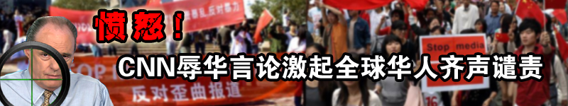 目前,一場由美國開始的“致美國有線電視新聞網(wǎng)(CNN)請愿書”網(wǎng)上簽名活動正在全球各地展開,已經(jīng)有一萬多人在網(wǎng)上簽名。全球華人華僑強烈要求CNN就其新聞評論員卡弗蒂發(fā)表侮辱中國人言論一事進行道歉。請愿書說,“從一個國家級的電視節(jié)目中聽到這種肆無忌憚的攻擊一個民族的歧視言論,這極為反常。我們相信,他(卡弗蒂)的言論明白無誤地暴露了其仇恨所有中國人民的偏執(zhí)心態(tài)。毋庸置疑,許多人受到了這種無恥攻擊的傷害,尤其是中國人”。 |