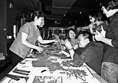 漳浦民間藝術(shù)家張崢嶸出身于剪紙世家,是福建省著名剪紙藝人黃素的外孫女。在福建民間美術(shù)展上,張崢嶸和浦城剪紙藝術(shù)家謝美貞的表演攤位總是吸引了眾多的觀眾。張崢嶸說此次她專門為展覽準備的140多張剪紙作品,不到兩天就只剩下了20多張勉強“撐門面”,其他都被參觀的臺灣鄉(xiāng)親取走。