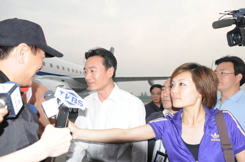 國臺(tái)辦和四川省臺(tái)辦領(lǐng)導(dǎo)到機(jī)場迎接臺(tái)灣救援隊(duì)。