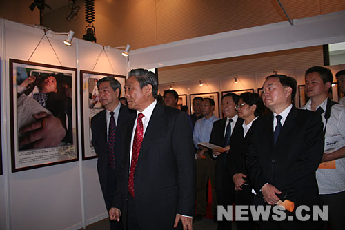 圖為全國人大常委會原副委員長熱地(左三)、教育部部長周濟(左四)、新華社社長李從軍(左二)共同為圖片展揭幕。新華社記者 溫桂旭 攝