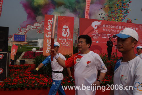 奧運官方網站5月25日訊 今日8時,北京奧運火炬接力蘇州站傳遞活動正式開始,江蘇省第一位羽毛球世界冠軍孫志安成為蘇州站首棒火炬手、江蘇境內首棒火炬手。
