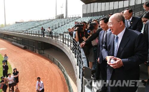 棒球在臺灣可謂最有“人緣”的體育項目。訪問團在京還參觀了將舉辦奧運會棒球比賽的五棵松棒球場。來自寶島的棒球健兒屆時就將在這個運動場進行比賽。