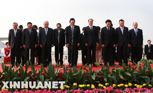 5月26日,訪問團與前來迎接的中共中央臺灣工作辦公室主任陳云林等一起為四川汶川地震遇難同胞默哀。 當日,中國國民黨主席吳伯雄率中國國民黨訪問團抵達南京祿口機場。 新華社記者龐興雷攝