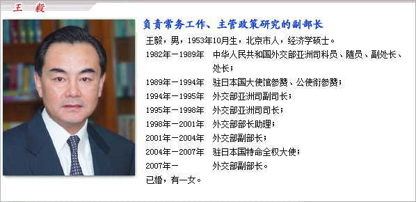 王毅生于1953年10月,北京人。1982年北京第二外國語學(xué)院亞非語系日語專業(yè)畢業(yè)。經(jīng)濟(jì)學(xué)碩士。