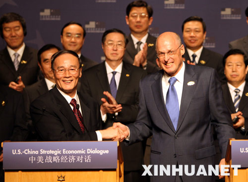 6月17日,第四次中美戰(zhàn)略經(jīng)濟(jì)對(duì)話(huà)在美國(guó)安納波利斯開(kāi)幕。國(guó)務(wù)院副總理王岐山和美國(guó)財(cái)長(zhǎng)保爾森作為兩國(guó)元首的特別代表共同主持對(duì)話(huà)會(huì)。 新華社記者姚大偉攝