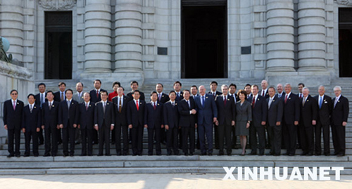 6月18日,第四次中美戰略經濟對話在美國安納波利斯閉幕。這是出席第四次中美戰略經濟對話的中美雙方代表在閉幕會前合影。 新華社記者 姚大偉 攝