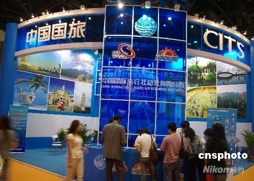 2008年6月20日,成為大陸首批開展赴臺旅游的中國國際旅行社總社等機(jī)構(gòu)亮相2008北京國際旅游博覽會。根據(jù)6月13日簽署的《海峽兩岸關(guān)于大陸居民赴臺灣旅游協(xié)議》,大陸居民赴臺旅游將自7月18日起正式實(shí)施,7月4日啟動首發(fā)團(tuán)。大陸首批開展赴臺旅游的旅行社共33家。 中新社發(fā) 九州 攝
