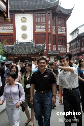 6月25日中午,臺北市長郝龍斌一行在上海著名的綠波廊飯店就餐,并逛城隍廟。中新社發 潘索菲 攝
