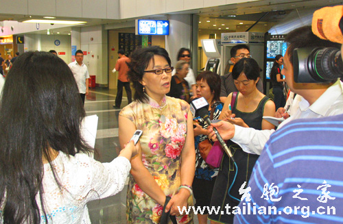臺灣霧峰林家后代、北京市臺聯理事林力女士與在京臺籍同胞肖萍女士今天早上跟隨港中旅的赴臺旅游首發團踏上了回家的路。 趙笑虹攝
