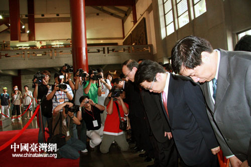 邵琪偉一行向紀念館內孫中山塑像鞠躬致敬(攝影:李徽)