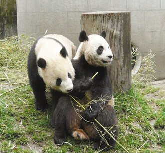 目前,它們的身體狀況已恢復到震前水平,體重還有所增加,其中“團團”體重達112公斤,“圓圓”為111公斤。它們每天都要吃5至6公斤的竹子,還要吃一些窩窩頭、蘋果等飼料。