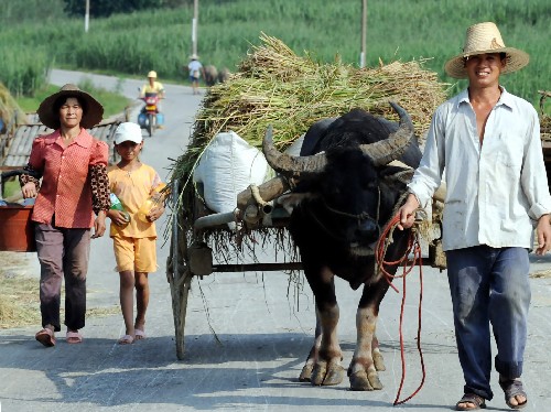 7月17日,廣西柳城縣古砦仫佬族鄉古旭村農民周漢平將收獲的稻谷運回家。 今年以來,廣西遭受罕見的冰凍和洪澇災害襲擊,農作物生產不同程度受到損害,當地黨委、政府在災后積極組織群眾進行生產自救。目前,廣西桂北地區的農民已在長勢喜人的稻田間開鐮收谷,爭奪夏糧穩產,降低災害損失。 新華社記者 張愛林 攝