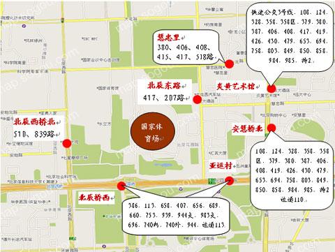 奧林匹克公園區開幕式公交專線落客及發車點、地鐵車站分布圖