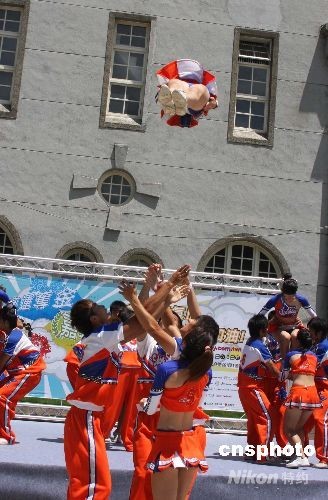 8月1日起,“臺北奧運奪金嘉年華”一連三天在臺北市華山創意園區舉行,其內容包括大型演唱會、通宵電音派隊、獨立樂團演出、創意市集等,是島內首創、規模最大的奧運加油活動。圖為開幕式上,來自臺北體育學院的競技啦啦隊表演高難度拋空動作。 中新社發 董會峰 攝