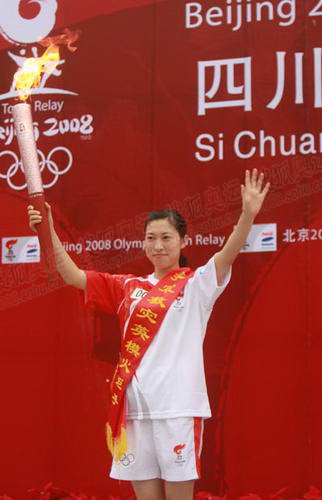 中國家喻戶曉的“抗震英雄”蔣敏擔(dān)任第一棒火炬手。“我會微笑,讓大家忘記悲傷,重新開始,因為我的家鄉(xiāng)依然美麗。”她說。