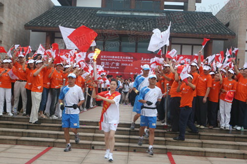 奧運火炬在鄧小平家鄉(xiāng)廣安開始四川境內(nèi)第一站的傳遞。7.3公里長的火炬接力路線上,人們沿途揮舞國旗和奧運旗幟,高喊“奧運雄起,中國雄起,四川雄起”。“雄起”是四川方言,意為振奮起來。