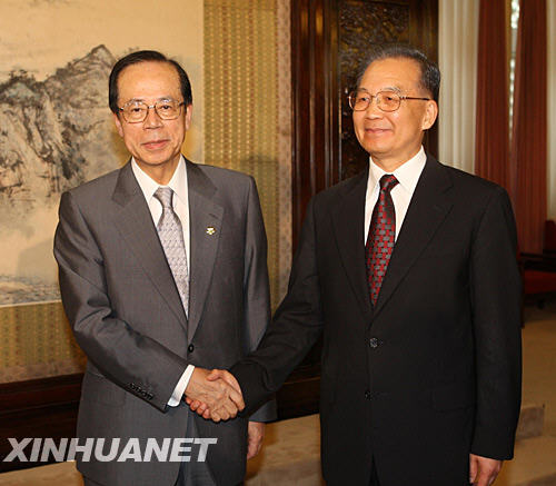 8月8日,中國國務院總理溫家寶在北京會見前來出席北京奧運會開幕式的日本首相福田康夫。新華社記者劉衛兵攝