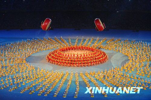 8月8日晚8時,第29屆夏季奧林匹克運動會在國家體育場——“鳥巢”隆重開幕。這是開幕式上的大型文藝表演《美麗的奧林匹克》。新華社記者張鐸攝