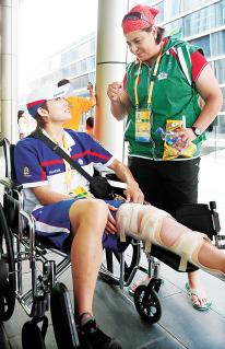 蘇麗文(左)準備坐輪椅參加閉幕式