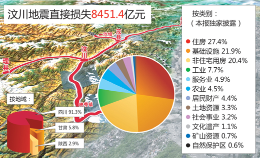 “經濟損失是最難確定的數據,地方報上來的總數超過1萬億,我們經過仔細再三核實,最終確定這個數字——8451.4億元。”在專家委員會中負責災情評估的史培軍教授說。