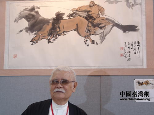 臺(tái)灣著名繪畫大師、83歲的李奇茂老人與他的參展作品“牧牛圖”
