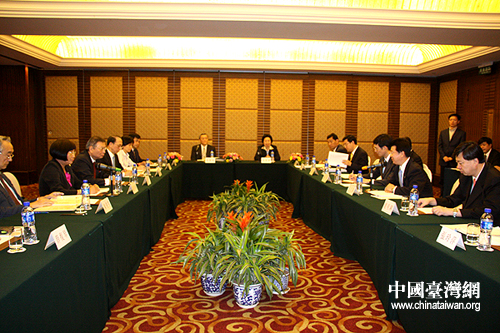 海協(xié)會專家團與海基會食品衛(wèi)生專家團今天上午在北京就問題奶粉事件和兩岸建立食品安全溝通聯(lián)系機制等事宜舉行座談(李徽 攝)