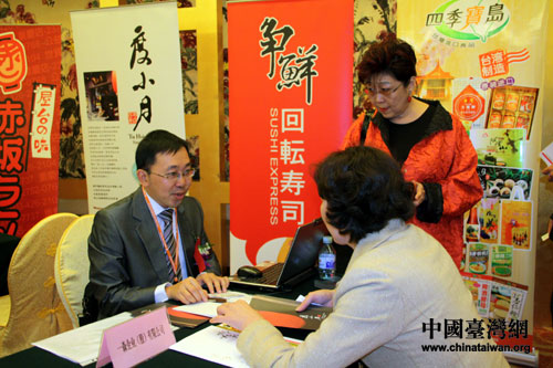 業(yè)者向大陸業(yè)者介紹臺灣美食(攝影:鐘寶華)