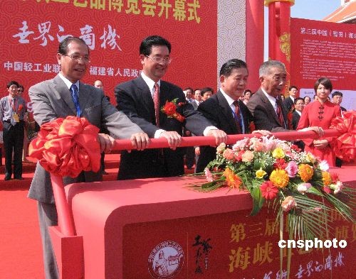 中新社莆田十月二十九日電 (記者 張彩林)由國臺(tái)辦、中國輕工業(yè)聯(lián)合會(huì)和福建省政府主辦的第三屆中國(莆田)海峽工藝品博覽會(huì)二十九日在福建莆田市工藝美術(shù)城揭幕,云集了來自北京、上海、廣州、江蘇、臺(tái)灣等地五百多家知名企業(yè)的近萬件海峽兩岸工藝精品。