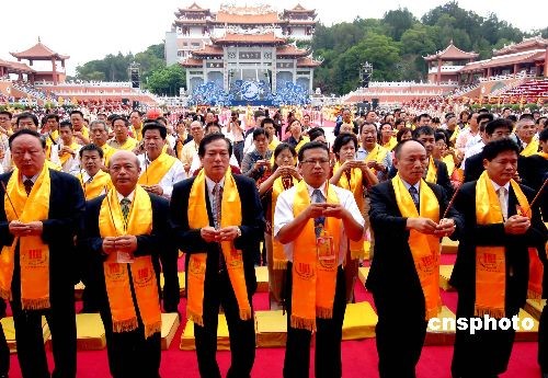 此次,包括臺(tái)灣大甲鎮(zhèn)瀾宮、北港朝天宮、新港奉天宮、鹿港天后宮等臺(tái)灣一百一十多家臺(tái)灣著名宮廟的代表們懷捧百余尊媽祖分靈神像,同謁媽祖,規(guī)模之空前彰顯了媽祖信仰超強(qiáng)的凝聚力。