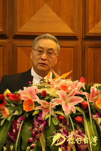 海峽兩岸關系協會副會長張銘清在論壇上發言 中華文化發展促進會秘書長辛旗在隨后的發言中指出,兩岸“三通”真正實現以后,兩岸站在了新的歷史起點上,建立、開展和強化中華民族的文化交流與融合已經成為兩岸的當務之急,也是從根本上保障兩岸民族融合、民族統一和民族繁榮的必然需要。