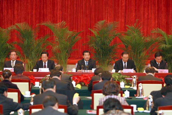 12月23日至25日,全國統戰部長會議在北京舉行。中共中央政治局常委、全國政協主席賈慶林出席會議并作重要講話。(新華社記者鞠鵬攝)