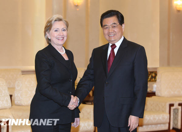 克林頓國務卿訪問期間,中國國家主席胡錦濤、國務院總理溫家寶、國務委員戴秉國分別與她進行會面,楊潔篪外長與她進行了會談。在會見中,胡錦濤主席特別指出,在當前國際金融危機不斷擴散和蔓延、各種全球性挑戰日益突出的背景下,進一步深化和發展中美關系比以往任何時候都更為重要。