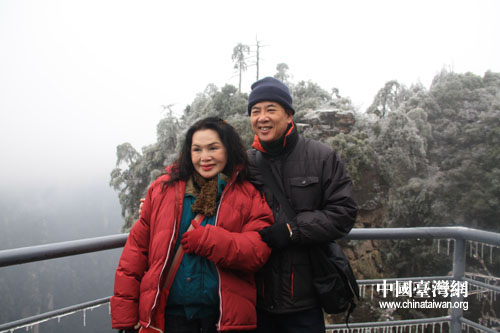 中國臺灣網(wǎng)2月28日消息 昨天,來湖南參訪的近40位臺南市地方民意代表、里長走進(jìn)清溪潺潺、奇峰聳立的張家界旅游風(fēng)景區(qū),游覽黃龍洞和武陵源風(fēng)景區(qū),26日晚上,正值雨季的張家界適逢一場較大的雨雪,昨天武陵源內(nèi)海拔稍高的地方出現(xiàn)了銀裝素裹的霧凇奇觀,引起來自寶島的客人驚嘆。