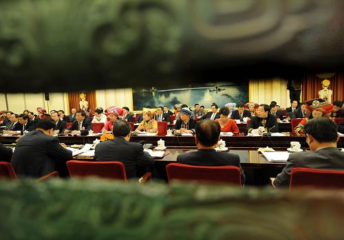 3月10日,十一屆全國人大二次會議廣西代表團審議全國人大常委會工作報告。 新華社記者 劉建生 攝