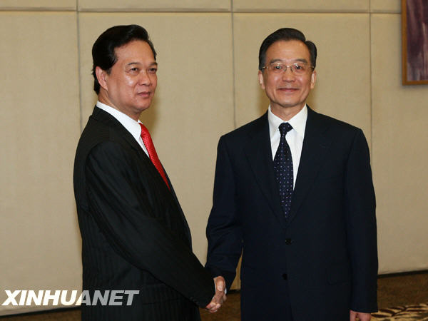 溫家寶在會見阮晉勇時說,明年是中越建交60周年,雙方決定舉辦“中越友好年”活動。面對國際金融危機的沖擊,加強中越合作具有特殊重要意義。中方愿與越方保持高層交往,鞏固政治互信;共同落實好雙方達成的共識,加強經貿合作的規劃,努力保持雙邊貿易增長。溫家寶指出,兩國去年底如期完成陸地邊界勘界立碑工作,為實現邊境地區長治久安和共同發展奠定了基礎。南海問題是中越之間最后一個懸而未決的歷史遺留問題。雙方要登高望遠,從大局出發,積極維護南海穩定,推進互利合作,爭取南海共同開發邁出積極步伐。