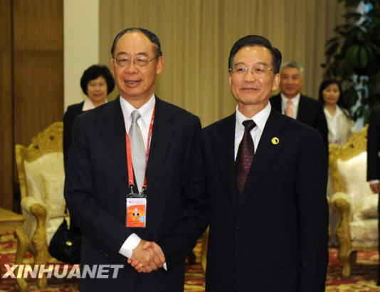 4月18日,國務院總理溫家寶在海南博鰲會見前來出席博鰲亞洲論壇2009年年會的臺灣兩岸共同市場基金會最高顧問錢復。新華社記者 黃敬文 攝