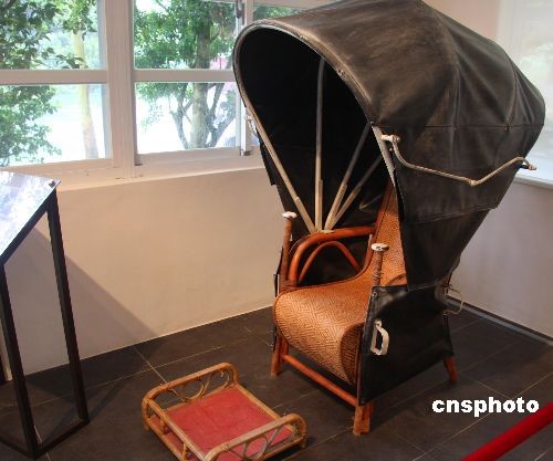 由臺灣軍方管制半個世紀的后慈湖今年五月一日將向普通游客揭開神秘的面紗。上世紀六十年代臺灣當局策劃反攻大陸的“國光計劃”時,曾在此建有五座戰(zhàn)備辦公室。圖為三號辦公室內(nèi)陳列的蔣介石的轎子。 中新社發(fā) 耿軍 攝