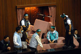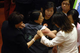 2008年10月22日:臺灣“立法院”教育委員會又爆發嚴重肢體沖突,兩位女“立委”動起手來,互相甩巴掌、抓臉。