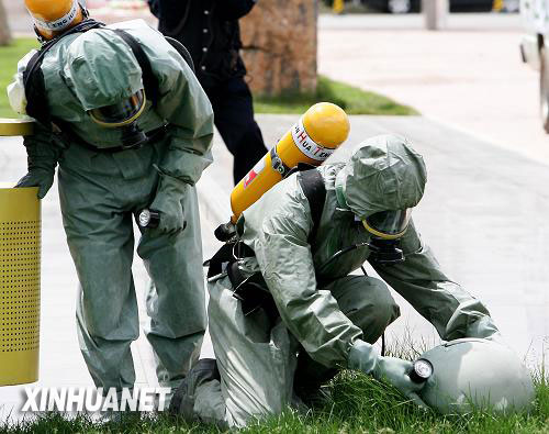 此次演習假想一伙“恐怖分子”潛入內蒙古自治區呼和浩特市, 藏匿在該市廣場附近某處所。警方對該處所進行了突襲。“恐怖分子”與警方對抗,并在窮途末路之際引爆屋內放射性“核臟彈”,放射性粉塵大面積散布。內蒙古自治區反恐部門接到情況通報后,迅速成立各級反恐指揮部,調集公安、武警、環保、衛生等專業處置力量密切協同,在國家反恐專家遠程指導下,成功完成“核臟彈”恐怖襲擊現場檢測、處置工作。